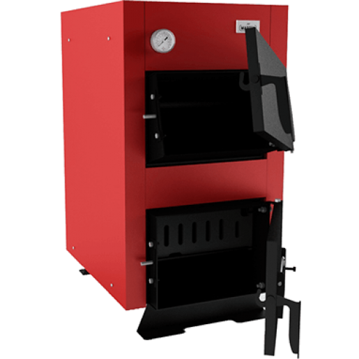 потужністю15 кВт призначений для опалення приміщень площею до 150 кв. метрів основними видами палива: антрацит, вугілля, дрова. Тривалість горіння разової загрузки палива: 5-8 годин