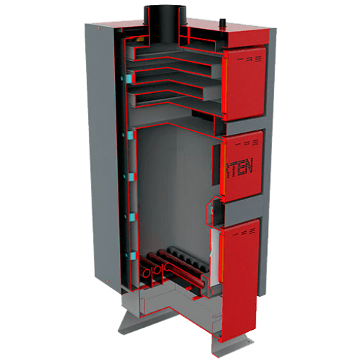 потужністю 12кВт призначений для опалення приміщень площею до 120 кв. метрів основними видами палива: антрацит, вугілля, дрова. Тривалість горіння разової загрузки палива: 8-24 годин